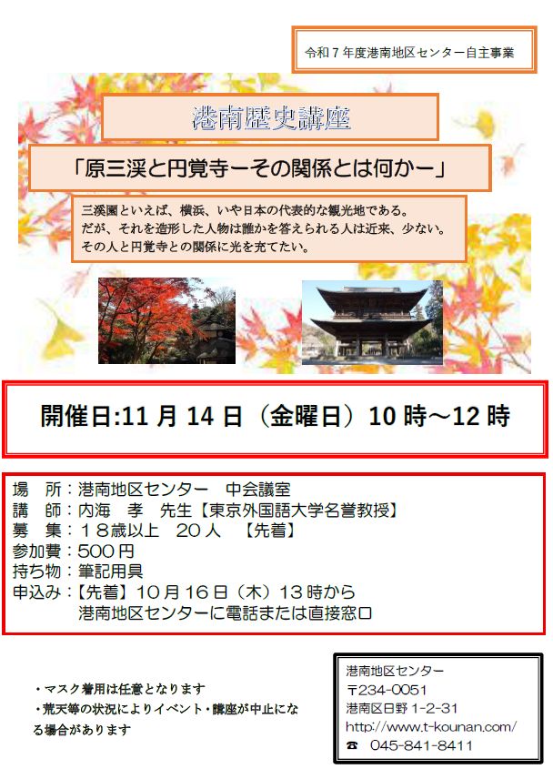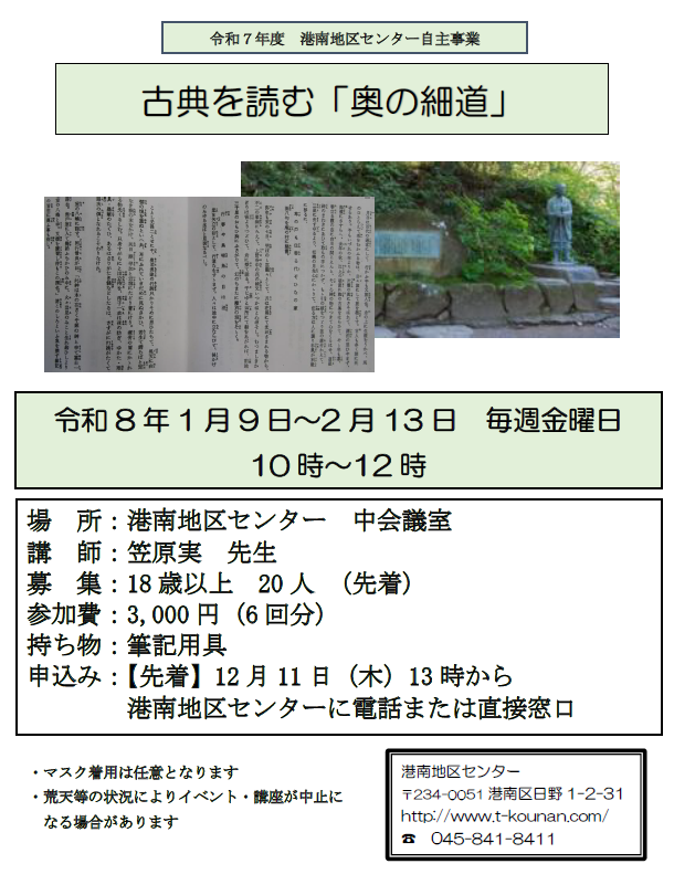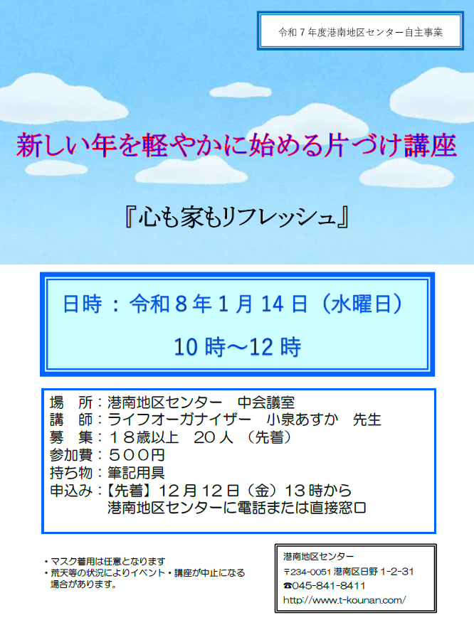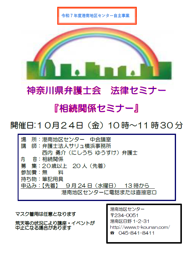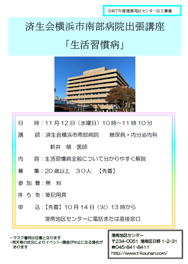 ・市営地下鉄:「港南中央」駅下車 徒歩4分