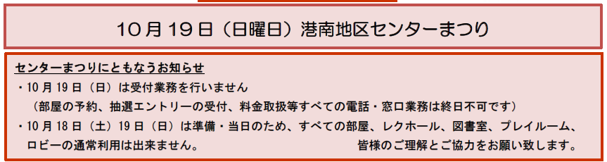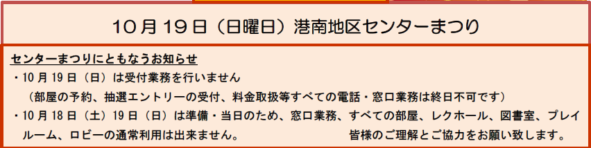 「港南シアター・秋 」開催にともなうレクホール使用不可のお知らせ
